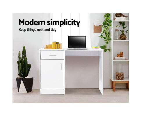100cm one drawer Desk with a Cabinet - White - NA100DK