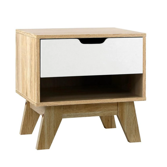 One whte drawer with shelf Bedside Table - Oak - NAEARDBS