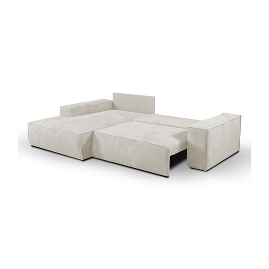 Anka "AMELIA" L-Shape Sofa Bed with Storage Corduroy Fabric Cream