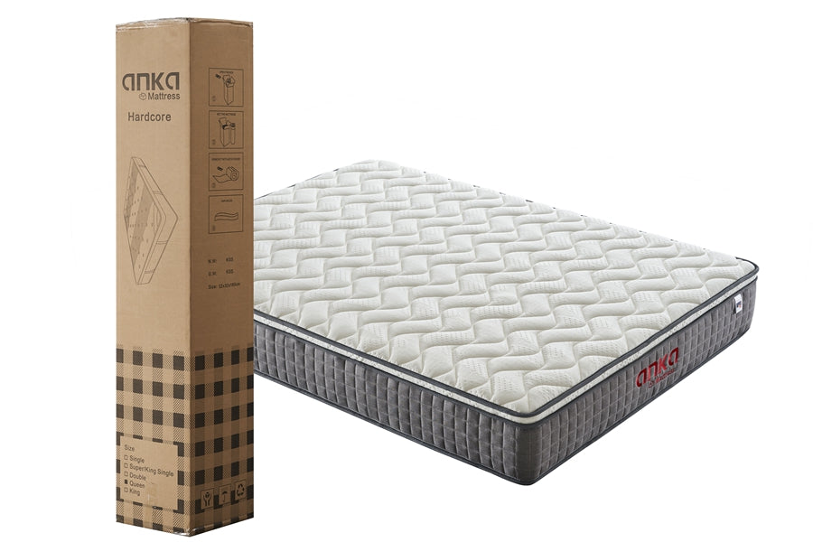 The Anka Hardcore Mattress delivers optimal comfort and support with its 2.6mm diameter super-firm pocket springs and 5cm 60D extra-density foam eurotop. The strong and solid support ensures restful, undisturbed sleep, and the Tencel fabric is dust mite-resistant, moisture-proof, and odor-free. Make this mattress your reliable sleeping partner for maximum comfort and support.