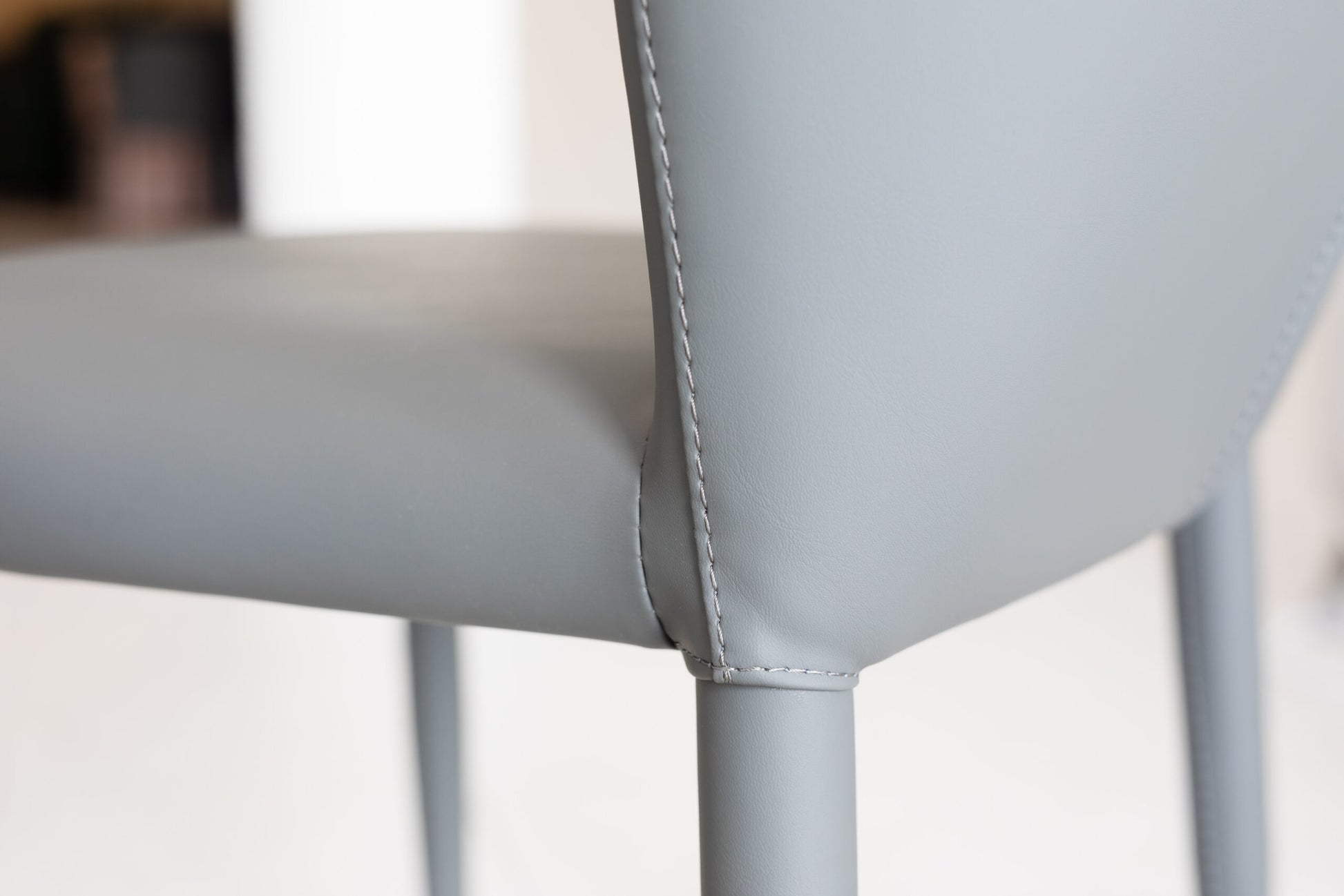 Introducing Luna – our expertly crafted dining chair that seamlessly blends modern design with comfort and affordability. Its sleek and curved backrest, combined with high-quality synthetic leather upholstery in a chic grey, makes it the perfect addition to any dining room décor.