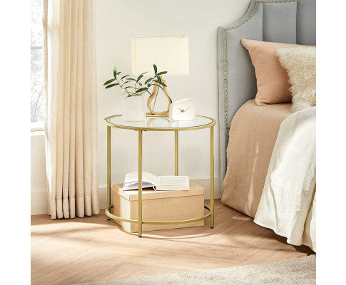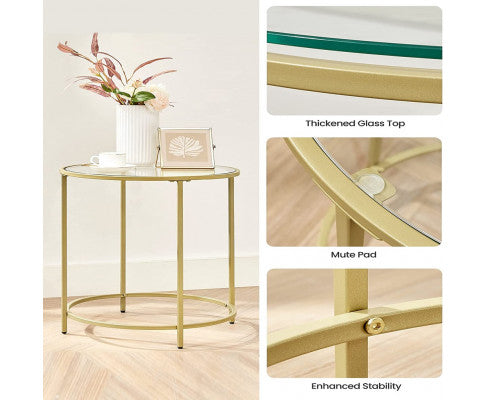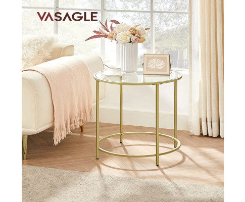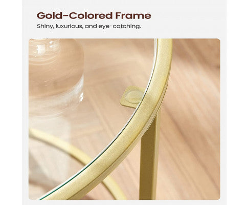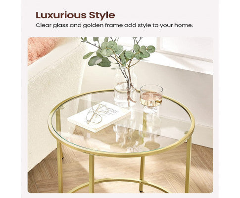 Anka Two Round Tempered Glass with Gold Steel Frame VASAGLE BedSide Tables