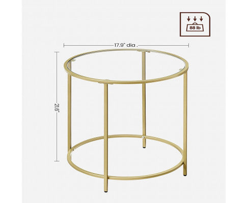 Two Round Tempered Glass with Gold Steel Frame VASAGLE BedSide Tables