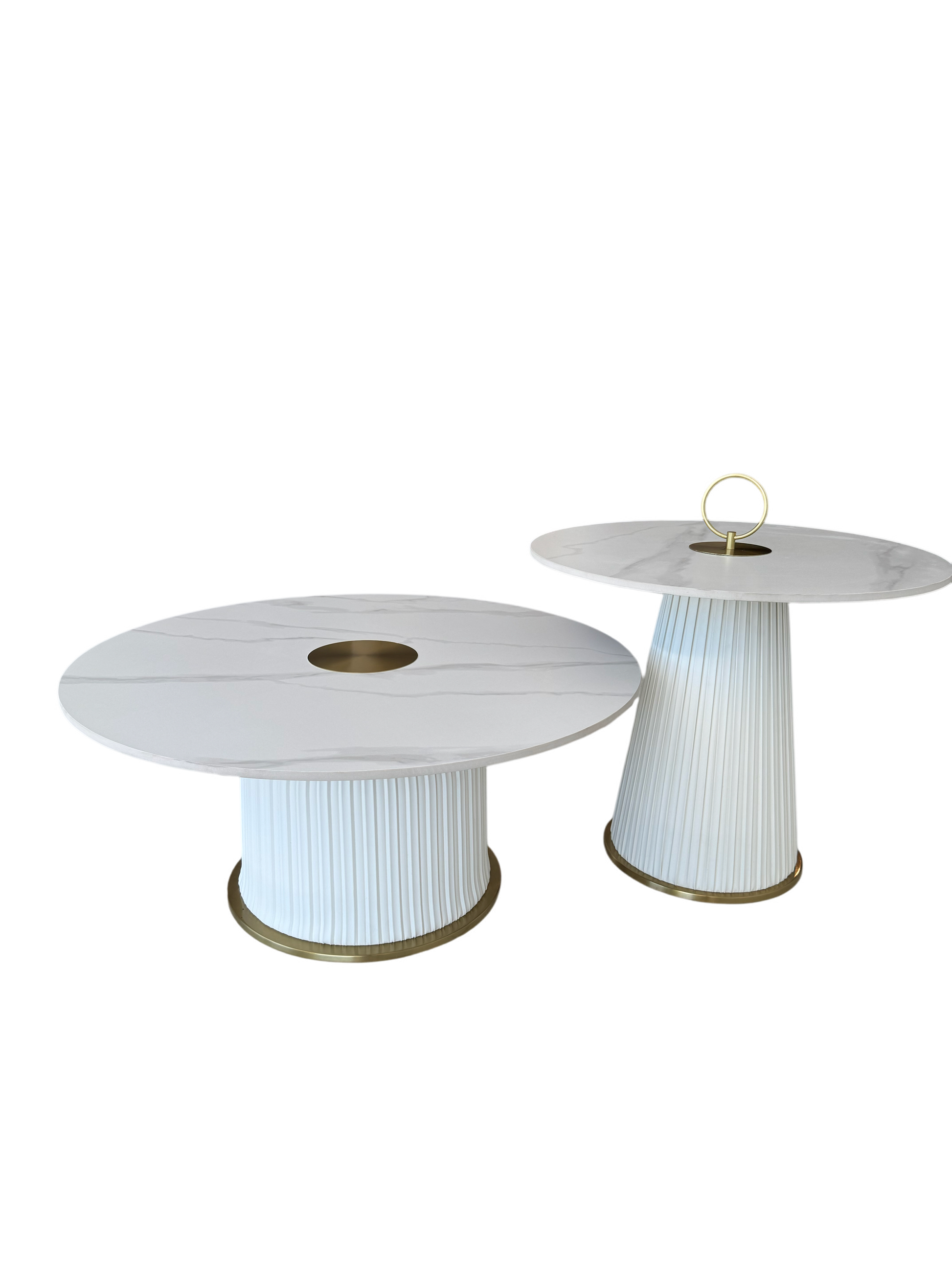 Introducing the Cupcake Coffee Table, a unique piece that combines playful charm with elegant design. Crafted with a large and small cupcake-inspired base, this table is made from luxurious marble stone, adding a touch of sophistication to any room. Stand out with this eye-catching and functional piece.